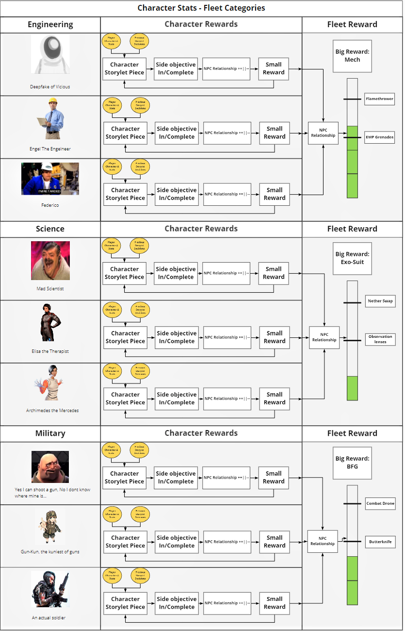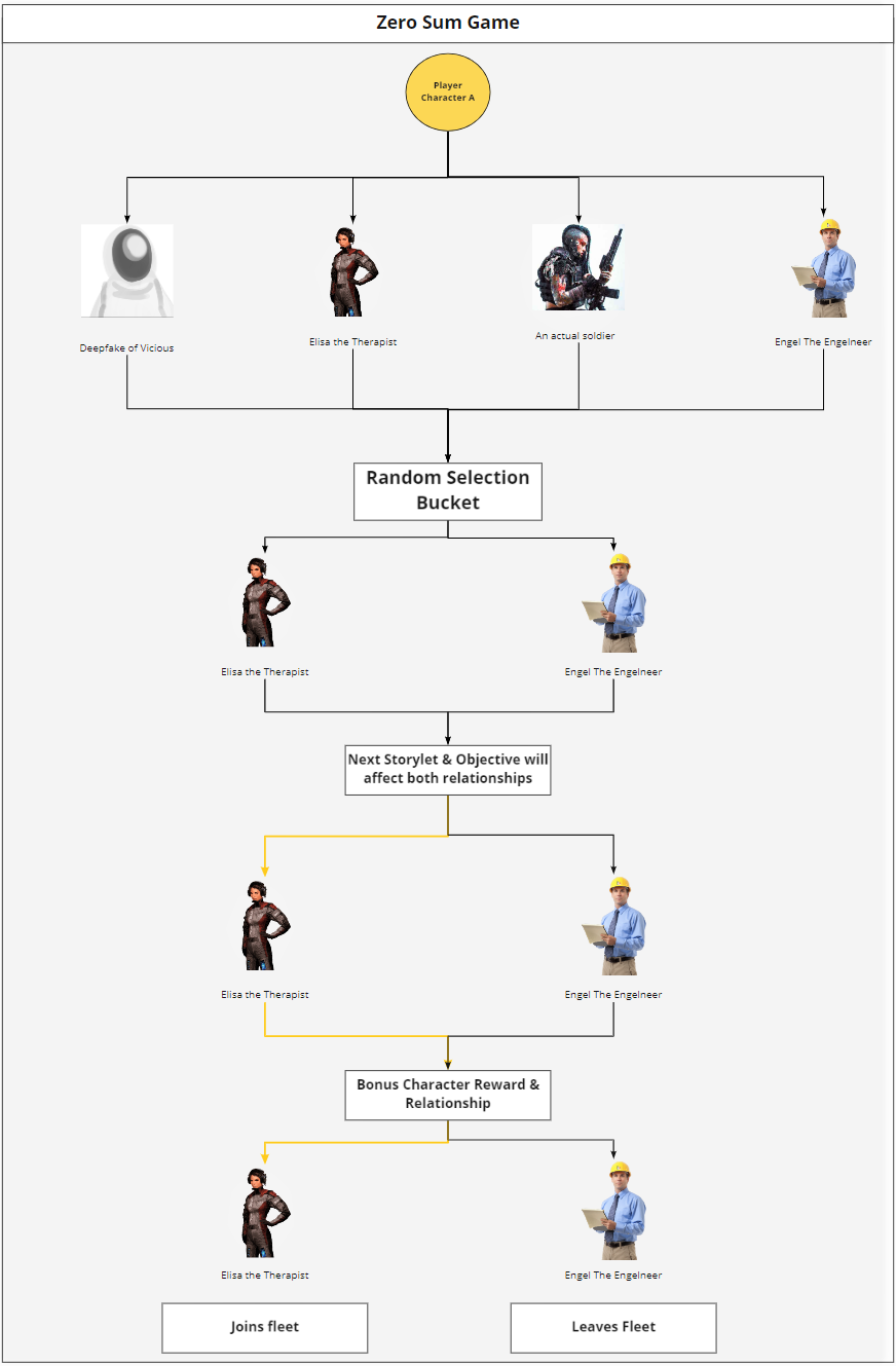 Pairing this O.C.E.A.N and NPC opinion system with a minor Fleet Management system, where the player would only be able to recruit a certain amount of NPC’s into their fleet (serving as the meta-game) would help create a Zero Sum game.