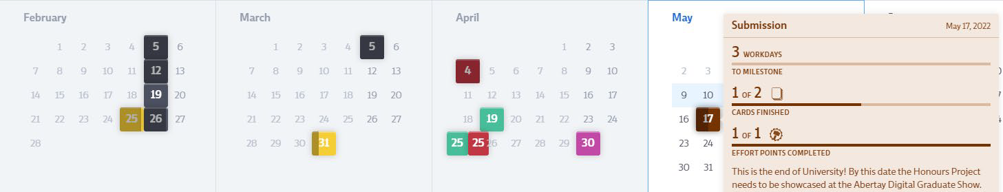 These were regularly reviewed at the end of each week to ensure we were still on track.