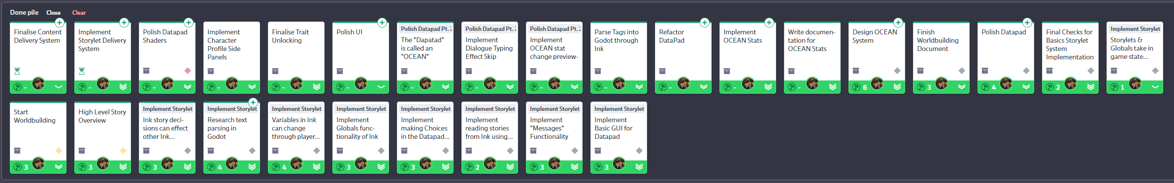 - I further widened my pool of technical knowledge through using new tools like INK and engines such as Godot to produce prototypes.