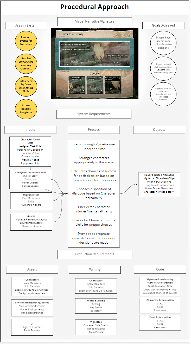 - Procedural Storytelling: Exploring techniques used by narrative designers to bridge the narrative gap with gameplay by systemizing the story to achieve player driven stories.