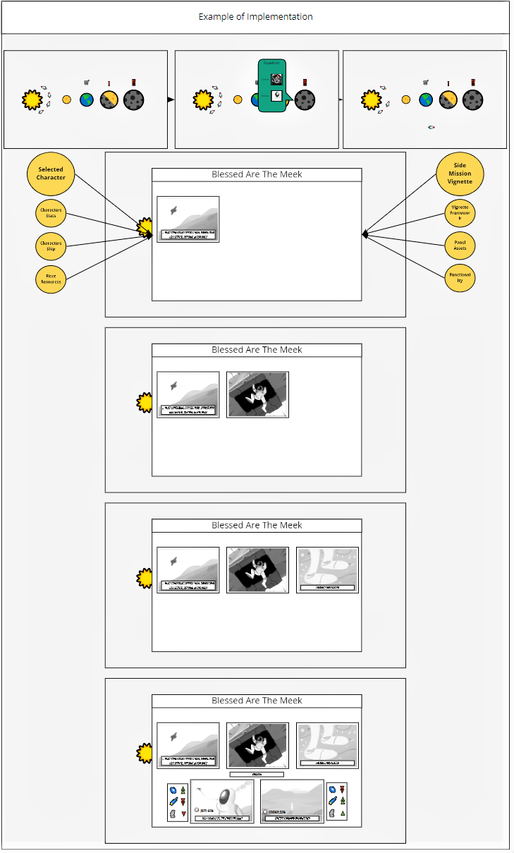I also mocked up a quick flow of how the storylets could be presented to the player based on the preference for our procedural approach to the narrative.
