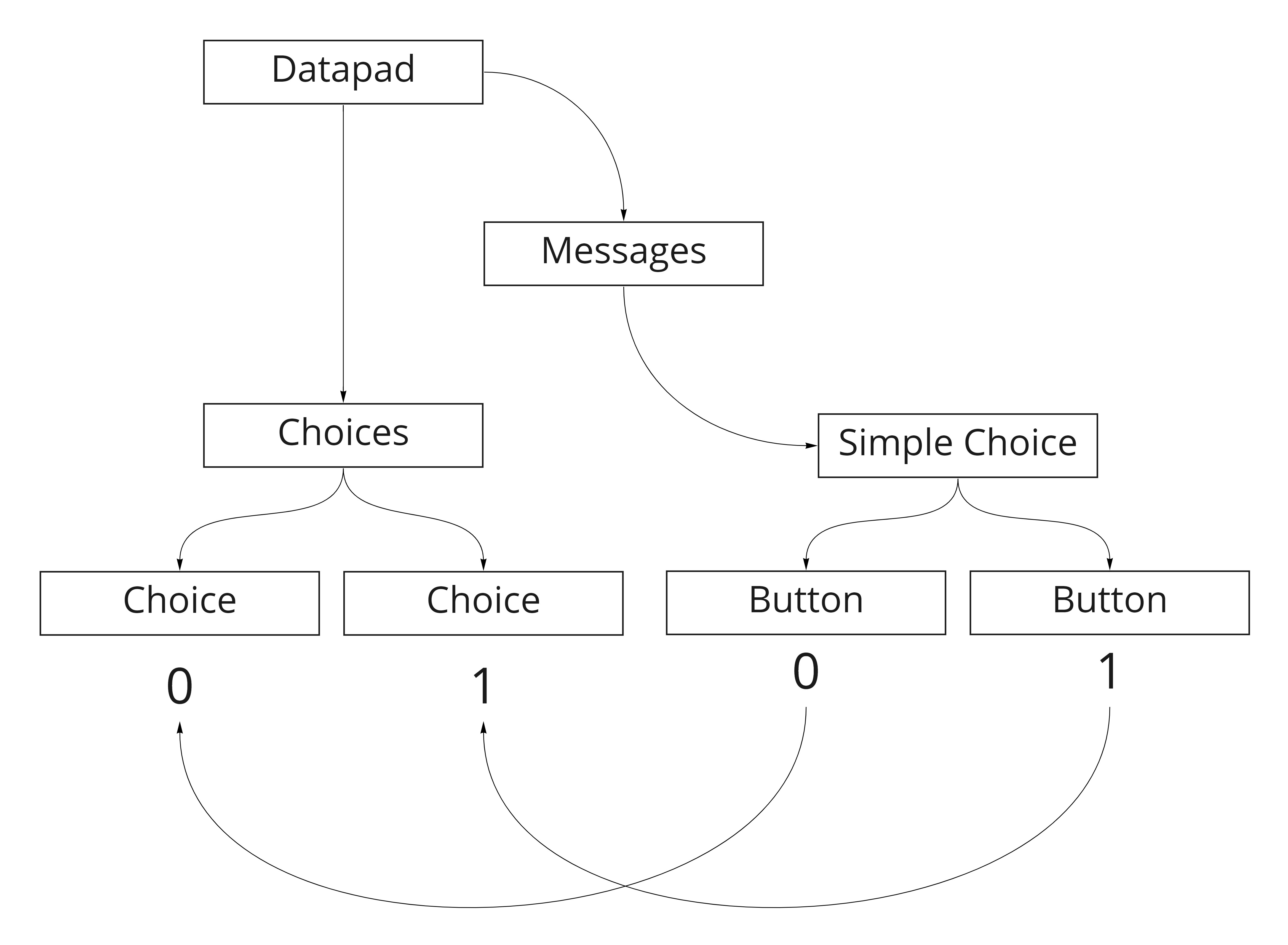 I then planned out theheirarchy of the Datapad (PDA). A storytrigger would activate the PDA, which would then read the current story fed to it, instantiate messages based on the initial text and check for any choices with each line of text it read through.