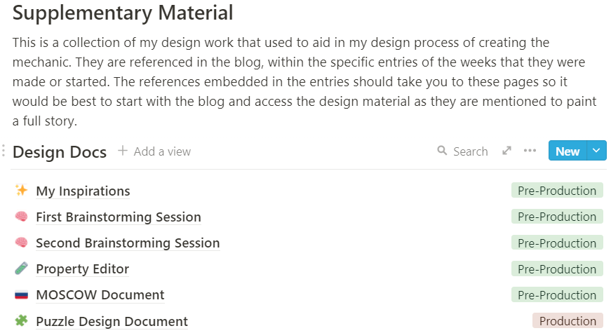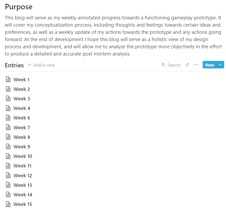 I started this project as I usually do, through researching similar games that achieve the intended player experience goals that I am aiming for and looking into applicable design frameworks I could use to help structure the design better. I then documented my findings and thoughts through a development blog which I updated weekly and contained my mechanical analyses.