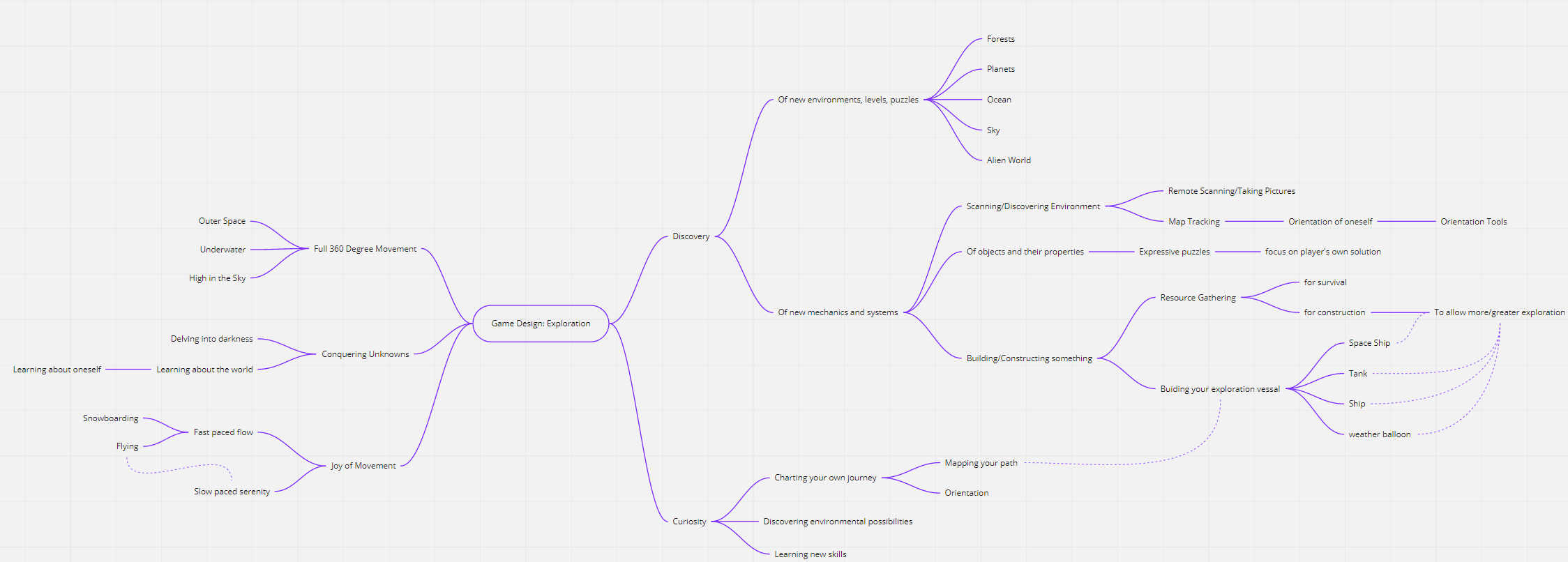 Using my research I started brainstorming and ideating, throwing together mindmaps of ideas and concepts, researching other games that achieved similar player experience goals and writing up my findings, and as I slowly got closer to the idea I liked I would sketch out possible uses for the mechanic in play through various puzzles.